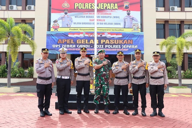 MahesaMediaCenter, Jepara – Dalam rangka Operasi Zebra Candi 2022, Polres Jepara Polda Jateng melaksanakan apel gelar pasukan yang dilaksanakan di lapangan Mapolres setempat, Senin (03/10/2022).