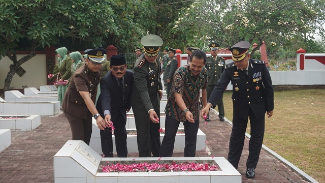 Upacara ziarah dan tabur bunga ini dipimpin langsung Dandim 0719/Jepara Letkol Inf Mokhamad Husnur Rofiq yang juga bertindak sebagai Inspektur Upacara (Irup). Hadir dalam upacara Sekda Jepara Edy Sujatmiko, dan jajaran Forkopinda.