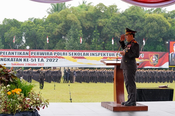 MahesaMediaCenter, Jawa Barat – Kapolri Jenderal Listyo Sigit Prabowo memimpin upacara penutupan pendidikan dan pelatihan Perwira Polri Sekolah Inspektur Polisi (SIP) Angkatan ke-51, Resimen Satya Intar Adinata Pratapa, di Sukabumi, Jawa Barat, Senin, 3 Oktober 2022.