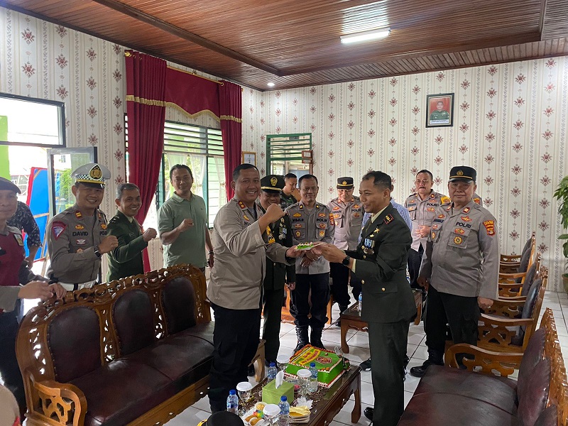 Dalam Kegiatan tersebut Kapolres Lampung Barat beserta rombongan “mengucapkan selamat ulang tahun (HUT) kepada TNI yang ke 77 dengan Tema TNI adalah Kita.