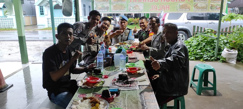 Saya Sertu Sugiyanto Babinsa Teluk Suak Koramil 1202-03/Sungai Duri mengucapkan terimakasih kepada Kapolsek berserta staf nya yang mana telah memberikan ucapan HUT TNI ke 77, dan memberikan kue untuk HUT TNI ke 77 kepada saya, semoga TNI – POLRI semakin solid, bersinergitas, menjaga NKRI. TNI adalah kita Ucap nya.