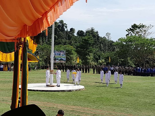 MahesaMediaCenter, Buol – Upacara dalam rangka memperingati hari ulang tahun daerah kabupaten buol Ke- 23 Tahun 2022,Di pimpin langsung Inspektur upacara Sekretaris Provinsi sulawesi tengah Dr. Rudi Dewanto, SE., MM. Bertempat di halaman kantor bupati buol kelurahan leok II.Kecamatan Biau Kabupaten buol Sulawesi Tengah, Rabu 12 oktober 2022, pkl.08.00.