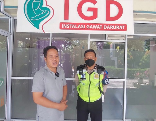 “saya dengar teriakan ‘Pak, Tolong’. lalu saya hampiri ternyata pak Ekip beserta istrinya membawa anaknya sedang sakit dan terlihat kejang kejang. Melihat itu saya langsung menyalakan sirine sepeda motor dan langsung kawal sampai kerumah sakit”, terang Aipda Andi.
