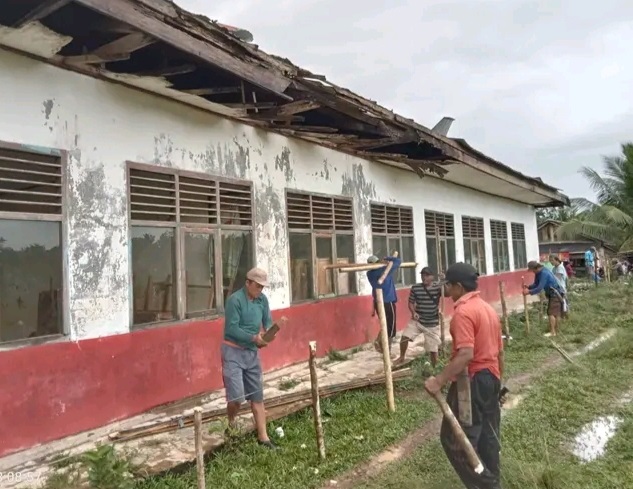 Selain terkesan tidak terawat, atapnya saja dibiarkan Pada lepas bahkan di atas atapnya sampai Plafon sekolah sudah bolong semua sudah seperti bangunan yang lama di tinggalkan pemiliknya.