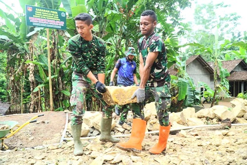 Cuaca panas terik matahari sepanjang hari itu tidak sedikitpun menyurutkan tekat dan semangat mereka dalam bekerja. Satgas TMMD Reguler ke-115 Kodim 0730/Gunungkidul dan warga masyarakat tetap bersemangat dalam bergotong-royong.
