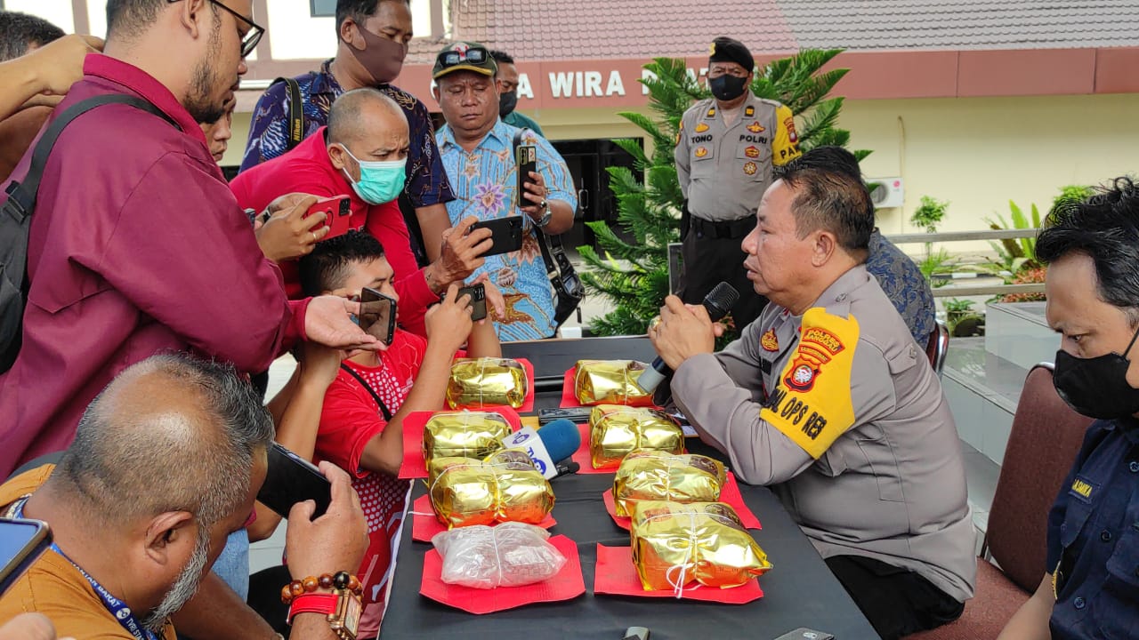 Dalam kegiatan Prees Reales tersebut menghadirkan tiga orang tersangka masing masing ES (43) warga Kelurahan Banjar Serasan Pontianak Timur Kota Pontianak, AR (43) warga Kelurahan Tanjung Hulu Pontianak Timur Kota Pontianak dan JS (42) warga Kelurahan Batu Layang Kecamatan Pontianak Utara Kota Pontianak.