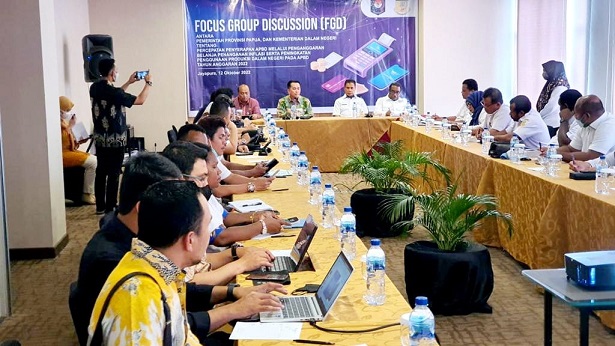 MahesaMediaCenter, Jaya Pura – Kementerian Dalam Negeri (Kemendagri) mengirimkan tim ke Papua melakukan monitoring, evaluasi dan asistensi untuk mempercepat realisasi Anggaran Pendapatan dan Belanja Daerah (APBD) dan penanganan inflasi. Tim Kemendagri menggelar Focus Group Discussion (FGD) Percepatan Penyerapan APBD, Penanganan Inflasi serta Peningkatan Produk Dalam Negeri bersama dengan Pemerintah Provinsi Papua dan Pemerintah Kabupaten/Kota se-Provinsi Papua, berlangsung di Hotel Swiss-bell Jayapura, Papua, pada Rabu, (12/10/2022).