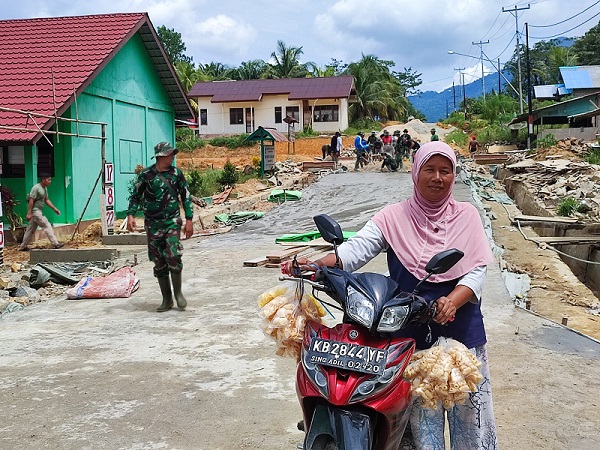Salah satu warga Ibu Ngatirah saat ditemui berjualan krupuk keliling di daerah lokasi TMMD pada Senin (17/10), mengungkapkan rasa terimakasihnya kepada TNI dan pemerintah Daerah atas terselenggaranya TMMD ke 115 di tempat dia tinggal.