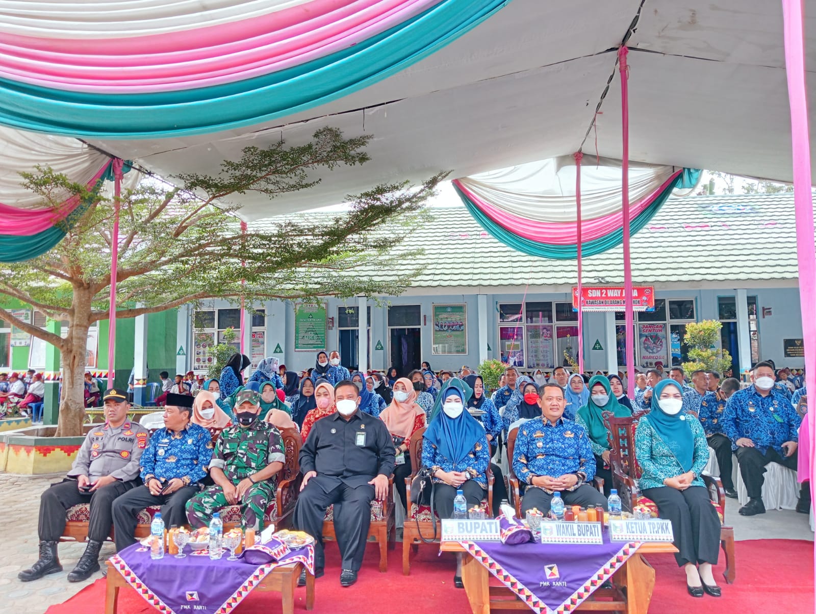 Hadir juga Wakil Bupati Tanggamus Hi.AM Syafii, Para Asisten, Forkopimda, Ketua TP-PKK, Ketua DWP, Kadis kesehatan, Para OPD, Camat pugung, Ketua Bhayangkari, Ketua Persit, Kepala sekolah SDN 1 Wai Jaha dan Para dewan guru.