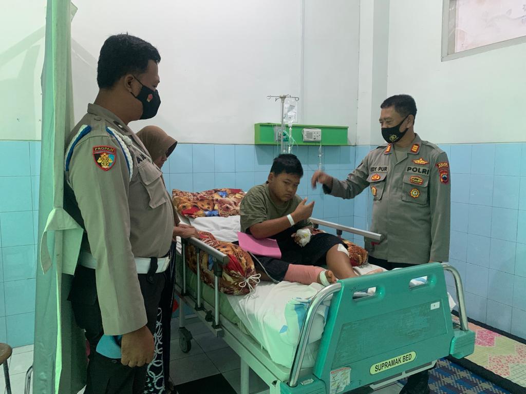 MahesaMediaCenter Jepara – Kapolsek Jepara Kota AKP Edy Purwanto bersama personil membesuk salah satu anak anggotanya yang mengalami sakit di RSUD Kartini Jepara, Rabu (19/10/2022).