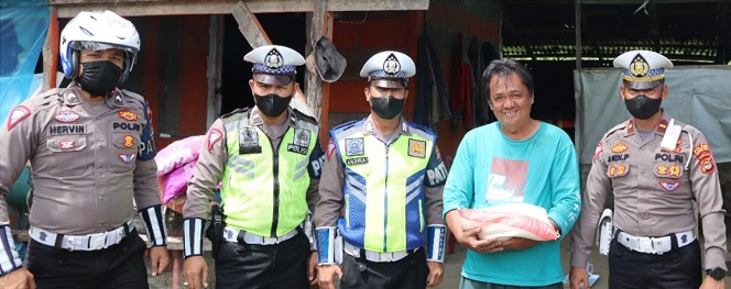 Sat Lantas Polres Lampung Barat Bagikan Bansos Di Hari Jum’at Berkah