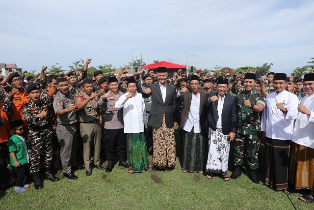 “Kalau dulu bawa bambu runcing sekarang pakai akal, pakai pikiran pakai jejaring. Dan paling saya suka tadi dari deklarasinya para santri ini sungguh moderat. Bagaimana menjaga NKRI,” tegas Ganjar.
