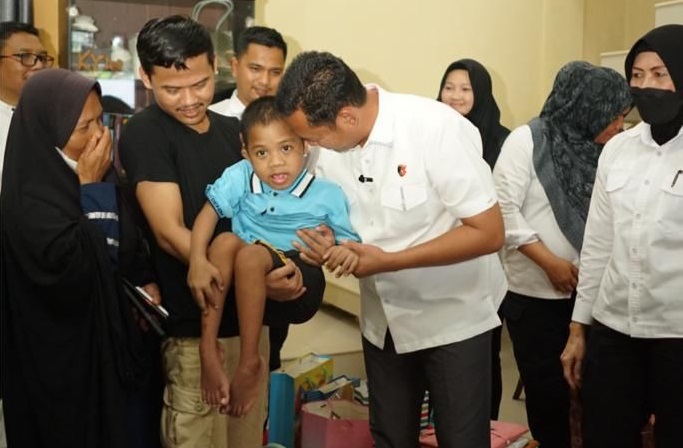 MahesaMediaCenter, Pekanbaru – Malangnya nasib anak penyandang difabel berinisial MR (10) membuat aparat kepolisian dari Ditreskrimum Polda Riau tak kuasa menahan belas kasihan, dan tergerak memberikan bantuan. Bantuan yang diberikan berupa baju sekolah hingga kursi roda kepada bocah malang tersebut.
