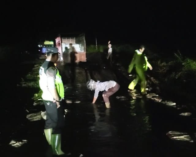 Selain melakukan penimbunan jalan, Kapolsek Bersama anggotanya juga melakukan pengamanan dan pengaturan arus lalu lintas di area jalan tersebut mengingat beberapa jam sebelumnya ada 3 unit mobil angkutan dan mobil tanki yang tumbang dikarenakan kondisi jalan yang rusak.