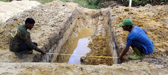 “Bahan papan yang digunakan bisa dari kayu pohon kelapa atau randu yang penting pada fungsinya yaitu kuat menahan beban saat cor mulai dibuat dan sampai proses cor itu mengering dengan hasil yang maksimal,” ujar Serda Sapriadi.
