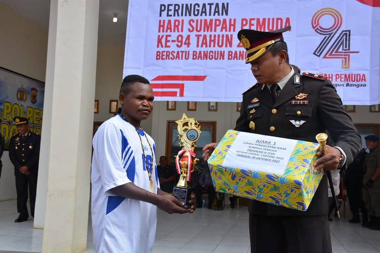 Kapolres Dogiyai Dalam sambutannya, membacakan amanat Menteri Pemuda dan Olahraga RI menyampaikan bahwa Sumpah Pemuda 28 Oktober 1928 memberikan pelajaran kepada kita bagaimana menyikapi perbedaan sikap primordial, suku, agama, ras dan kultur, serta berbagai kepentingan menjadi kekuatan, bukan sebagai faktor yang melemahkan.