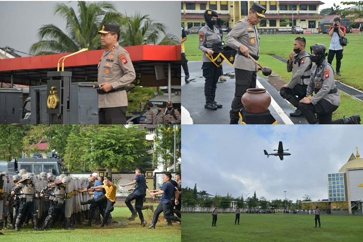 Setelah upacara selesai di lanjutkan dengan peragaan beladiri, ketrampilan mengemudi R2 yg di rangkai dalam skenario patroli, pengendalian massa yang di.libatkan juga K9 dari situasi hijau sampai dengan situasi kuning dan massa bubar yang di pantau dengan dround ditsamapta Polda Kalbar dan terakhir seluruh peserta bersalaman dengan Kapolda Kalbar dan PJU Polda Kalbar