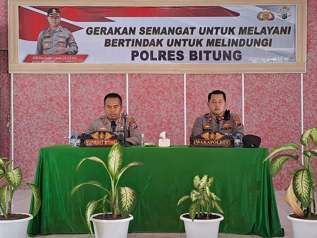 Kepada seluruh personel yang hadir, Kapolres Bitung AKBP Alam Kusuma S. Irawan meneruskan arahan Commander Wish Kapolda Sulut dan program Quick Wins Presisi.
