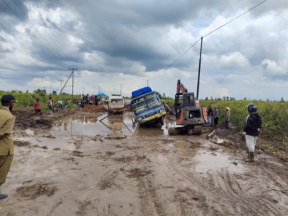“ Memang kondisi jalan di area ini sudah sangat parah ditambah lagi intensitas curah hujan yang tinggi yang membuat genangan air, sehingga kita berharap bersama dengan adanya penimbunan darurat ini dapat memperlancar arus lalu lintas di wilayah ini, mengingat juga beberapa rombongan peserta MTQ Tingkat Provinsi yang akan mengikuti lomba di Kabupaten Ketapang, melewati akses jalan ini sehingga harus kita pastikan kelancaran dan keamanan arus lalau lintas saat warga melewati jalan ini ” tutup Meinardus.