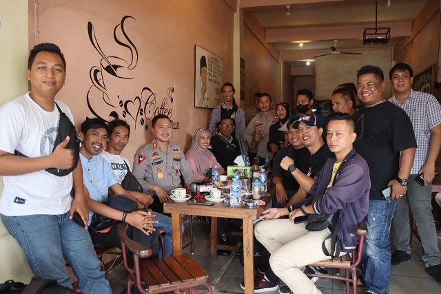 MahesaMediaCenter, Sintang – Kapolres Sintang AKBP Tommy Ferdian didampingi Kasat Intelkam AKP Galih Wicaksono dan Kasi Humas AKP Sudjiono, gelar coffee morning bersama insar pers Sintang di Warung Kopi Medan Jalan PKP Mujahidin Sintang, Kamis (3/10/2022).