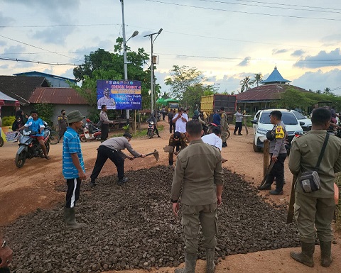 Adapun material yang digunakan untuk melakukan penimbunan berupa Batu Split sebanyak tiga Dump bantuan CSR dari PT. BGA Region Sungai Melayu.