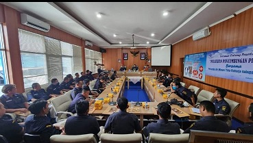 MahesaMediaCenter, Sukabumi – Perusahaan Umum Daerah Air Minum (Perumdam) Tirta Jaya Mandiri (TJM) Kabupaten Sukabumi bekerjasama dengan Perumda Air Minum Tirta Raharja Kabupaten Bandung dalam melaksanakan Pelatihan Penyambungan Pipa HDPE (High Density Polyethylene) di Aula Kantor Pusat Perumdam TJM, Selasa (01/11/2022).