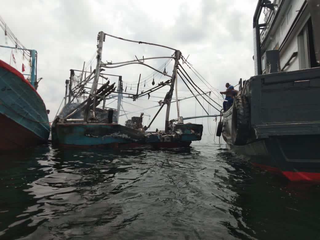 Kapal Polisi Raja Udang VI-4002 Bantu Padamkan Kebakaran Kapal Pengangkut Cumi