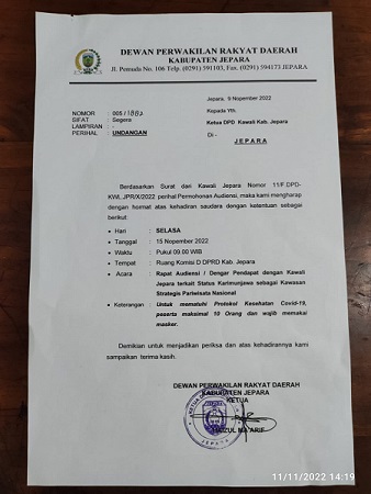 MahesaMediaCenter, Jepara – Koalisi Kawali Indonesia Lestari (KAWALI) Kabupaten Jepara, Jawa Tengah, akan melakukan audiensi di DPRD Jepara terkait kejelasan status Karimunjawa sebagai Kawasan Strategis Pariwisata Nasional , Kawali bersama tokoh masyarakat, pelaku wisata, BEM FPIK (Fakultas Perikanan dan Ilmu Kelautan) UNDIP, Komunitas Save Karimunjawa, Advokat dan OPD Terkait seperti PUPR, DLH,DPMPTSP, Disparbud, Dishub, Satpol PP, Pemerintah Desa Kemujan dan Karimunjawa, Unsur Kecamatan Karimunjawa, beserta Komisi terkait yang akan direncanakan pada hari Selasa, 15 November 2022. Dan di langsung di Ruang Serbaguna DPRD Kabupaten Jepara.