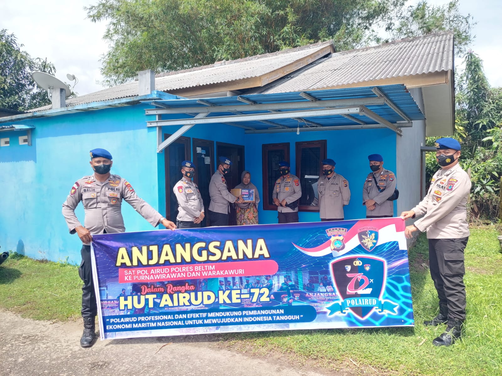 Kasat Polairud Polres Belitung Timur AKP Edi Harto Kepada Awak media mengatakan “pada hari ini kami mengadakan kegiatan Anjangsana ke Purnawirawan Polri dan Warakawuri yaitu kegiatan pemberian bantuan sosial berupa paket sembako dalam rangka memperingati HUT Airud ke-72 tahun 2022”.