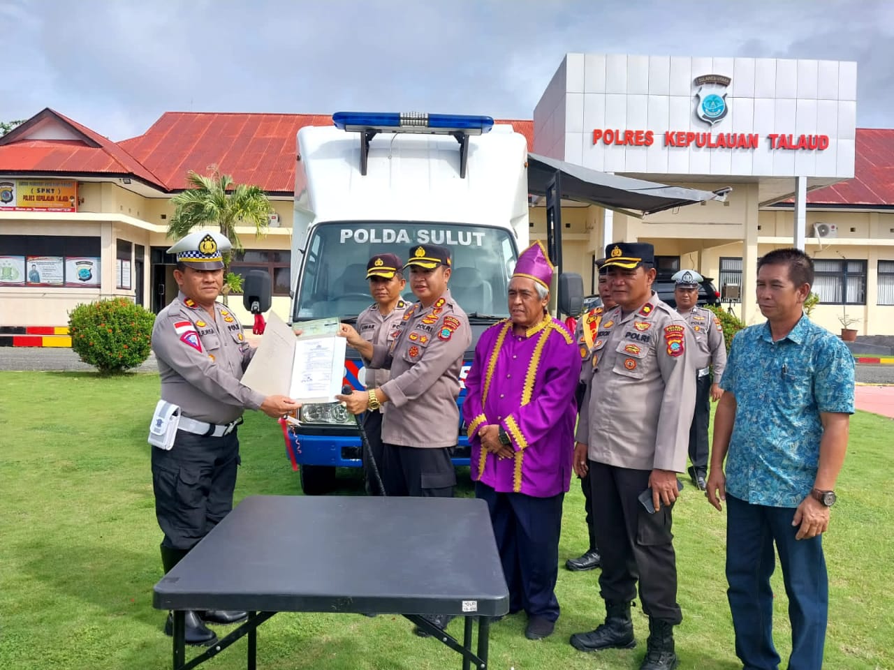 MahesaMediaCenter, Talaud – Polres Kabupaten Kepulauan Talaud menggelar prosesi Upacara penyerahan 1 Unit mobil SIM Keliling dari Direktorat Lalulintas Polda Sulut, yang nantinya untuk melayani perpanjang SIM secara mudah bagi warga masyarakat di Kabupaten Kepulauan Talaud bertempat halaman Mapolres,