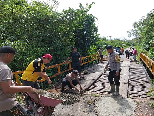“Mengingat jembatan ini merupakan akses jalan utama yang biasa digunakan warga, kita harus melakukan perbaikan demi keamanan dan kenyamanan,” jelas Iptu Rajiman