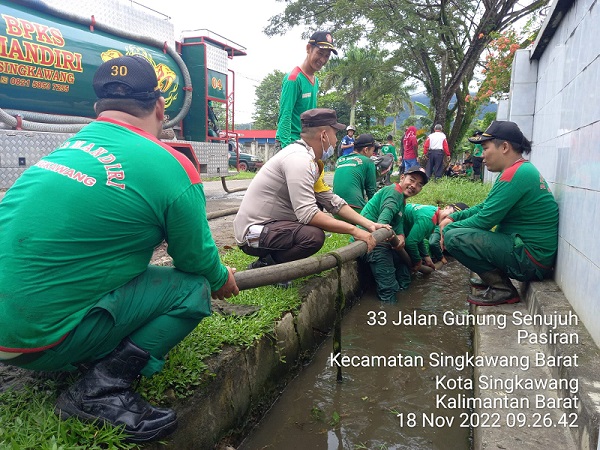 MahesaMediaCenter, Singkawang – Polsek Singkawang Barat guna antisipasi banjir dilaksanakan kerja bakti