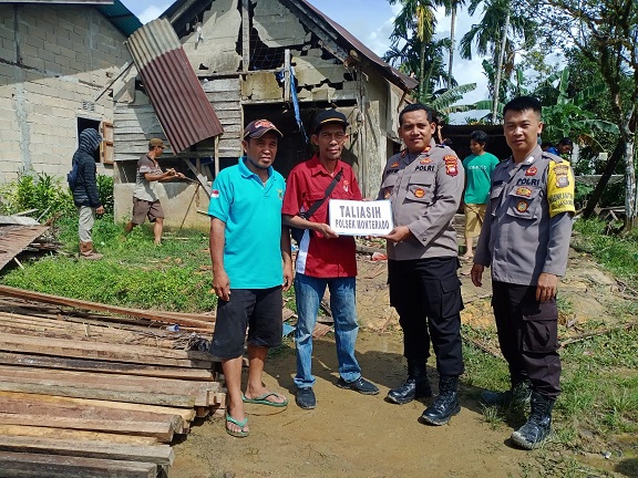 Polsek Monterado Bersinergi Dengan Pemdes Jahandung, Bedah Rumah Warga Yang Tak Layak Huni