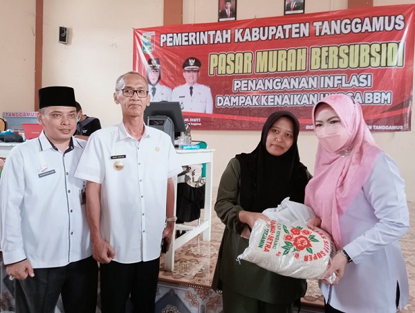 Bupati Tanggamus Hj. Dewi Handajani dalam sambutan nya, Semoga dengan ada nya pasar murah bersubsidi ini harapan kami dapat meringankan beban masyarakat, Karna pada saat ini dengan penyesuaian kenaikan BBM dan yang lain nya, Yang mengakibatkan harga sembako dan kebutuhan masyarakat meningkat.