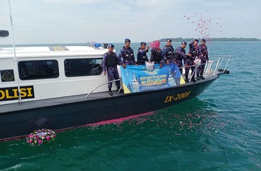 Kasat Polairud Polres Jepara AKP Lukman Fuadi, SH, memimpin kegiatan upacara ini dan diikuti anggotanya serta anggota BKO dari Ditpolairud Polda Jateng menggunakan dua buah kapal.