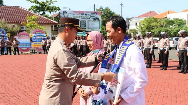 MahesaMediaCenter, Jepara – Kegiatan upacara secara khusus dilaksanakan hari ini oleh Polres Jepara, Kapolres Jepara AKBP Warsono, SH., SIK,., MH, menyerahkan hadiah secara langsung kepada warga yang telah memenangkan hadiah Umroh di halaman Mapolres Jepara, Selasa (29/11/2022).