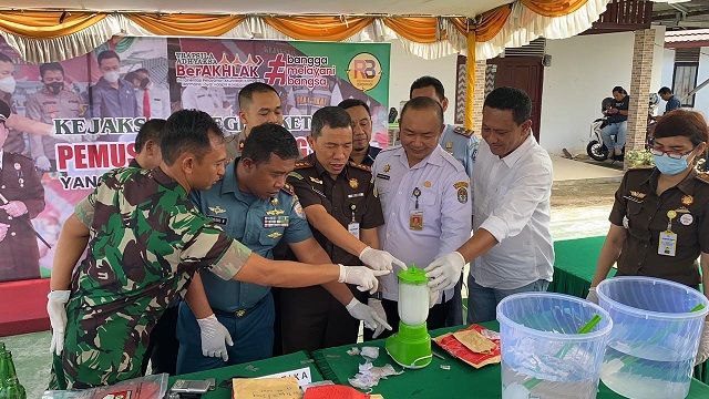 Kepala Kejari Ketapang Alamsyah dalam kesempatannya menyampaikan pemusnahan barang bukti hasil tindak kejahatan ini dilaksanakan setelah ditetapkannya status sebagai barang bukti dan perintah pelaksanaan pemusnahan barang bukti.