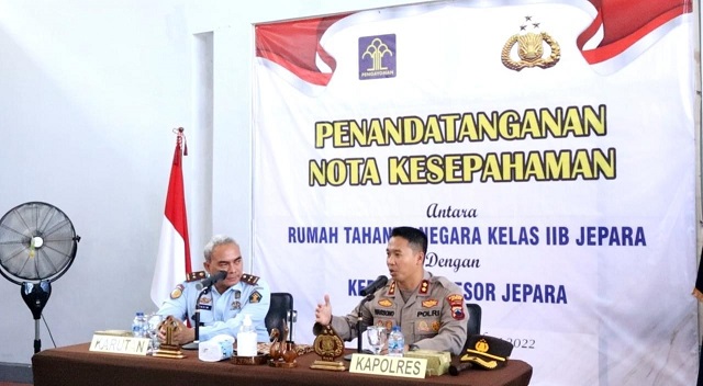 MahesaMediaCenter, Jepara – Dalam rangka meningkatkan sinergi dan kerjasama dengan aparat penegak hukum lainnya, Rutan Jepara lakukan penandatanganan nota kesepahaman dengan Polres Jepara, Selasa (06/12/2022).