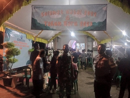MahesaMediaCenter, Jepara – Guna memberikan rasa nyaman dan aman bagi Umat Kristiani yang melaksanakan ibadah Misa Natal, petugas gabungan TNI-Polri dari Koramil maupun Polsek melakukan pengamanan.