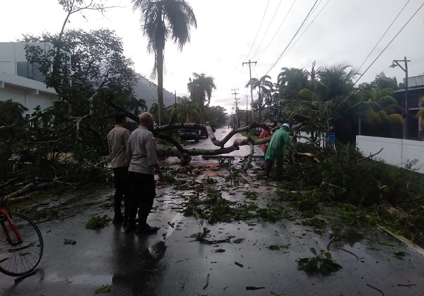 Adapun pohon yang tumbang tersebut diakibatkan curah hujan yang tinggi berikut angin yang kencang sehingga pohonnya tumbang dan melintang ke Jalan Raya yang mengakibatkan terganggunya arus lintas serta menimpa aliran kabel Listrik dan kabel Telkom , dari pihak DLHK melakukan pemotongan kayu dengan menggunakan alat Chinsaw dan Parang , sedangkan Petugas Kepolisian Melakukan Pengaturan Lalu Lintas agar menempuh jalur lain , serta membantu mengangkat dan meminggirkan kayu yang sudah terpotong – potong agar lalu lintas lancar dan tidak terganggu karena arus tersebut merupakan arus lalu lintas menuju rumah Sakit Abdul Azis Singkawang.