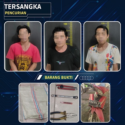 Pelaku pencurian berinisial SN (42), SI (44) dan FY (37) di tangkap Polsek Sungai Ambawang. Tiga orang ini diduga melakukan pencurian kabel di Tower Indosat pada Rabu tanggal 23 November 2022 sekira pukul 04.00 Wib pagi.