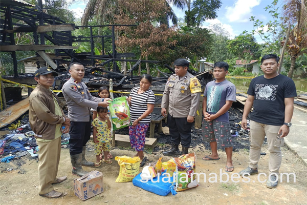 MahesaMediaCenter, Sekadau Kalimantan Barat – Polsek Sekadau Hulu memberikan bantuan Sosial berupa sembako dan tali asih kepada korban musibah kebakaran di RT. 003 Ulu Boin dusun Jopo desa Cupang Gading, Senin 19 Desember 2022.
