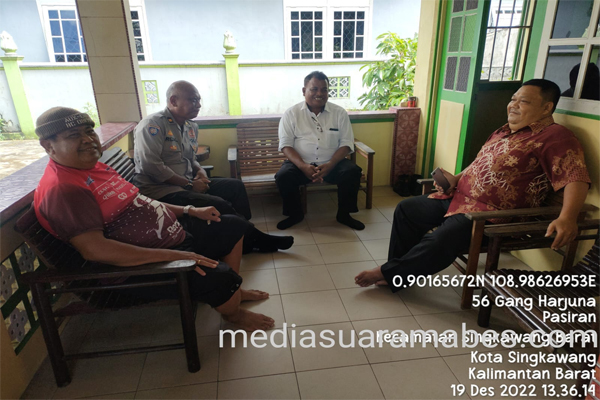 MahesaMediaCenter, Singkawang – Polsek Singkawang Barat melaksanakan silahturahmi hari Senin , tanggal 19 Desember 2022, sekira Jam. 13.30 Wib s/d jam. 14.00 Wib, telah melakukan Koordinasi dan Silahturahmi terhadap Ketua Dewan Adat Dayak (DAD) Kec. Singkawang Barat beserta perangkatnya di Jalan GM.Situt Gang Arjuna Kel.Pasiran Kec. Singkawang Barat.