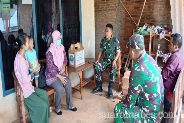 Danramil 01/Jepara Alex Effendi di damping Petinggi dan Bidan Desa memberikan santunan kepada anak asuh Stunting di Desa Kuwasen, Kabupaten Jepara. Selasa, (20/12/2022).