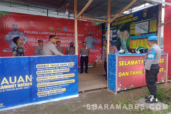 MahesaMediaCenter, Lampung Barat – Kapolres Lampung Barat Polda Lampung Heri Sugeng priyantho,S.IK,MH selaku Kaopsres ( Kepala Operasi Resor) Lilin Krakatau 2022 laksanakan pengecekan Pos pelayanan Tugu Liwa, Jumat (23/12/2022).