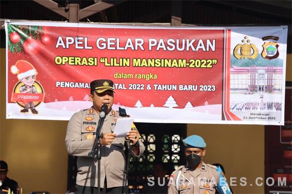 Kapolres manokwari Akbp Parasian H. Gultom, S.I.K., M.Si dalam membacakan amanat kepala Kepolisian Negara Republik Indonesia mengatakan “Apel Gelar Pasukan merupakan bentuk pengecekan akhir kesiapan personel maupun sarana prasarana. Dengan demikian, diharapkan pengamanan dapat terselenggara secara optimal dan sinergi, sehingga perayaan Natal 2022 serta Tahun Baru 2023 (Nataru) mampu berjalan dengan kondusif,” ujarnya.