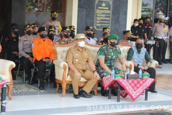 Sementara pasukan apel terdiri dari TNI, Polri, Satpol PP, BPBD, Dishub, PMI, Basarnas, Pramuka, Saka Bhayangkara, serta Ormas dan Komunitas Relawan,