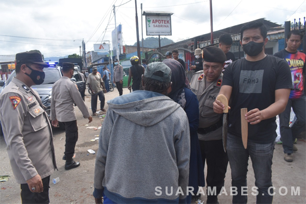MahesaMediaCenter, Nabire – Dalam rangka Operasi Lilin Cartenz 2022, Polres Nabire lakukan razia senjata tajam (sajam), bertempat di perempatan Pasar Karang Tumaritis, Nabire, Papua Tengah, Jumat (23/12/2022).