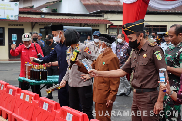 “Hari ini kita musnahkan sebanyak 1.127 botol dan 3 jerigen (ciu) isi 30 liter minuman keras dari hasil Kegiatan Rutin Yang Ditingkatkan (KRYD) tahun 2022. Semua barang bukti ini sudah berkekuatan hukum tetap,” ujar AKBP Yolanda, usai melaksanakan pemusnahan miras.