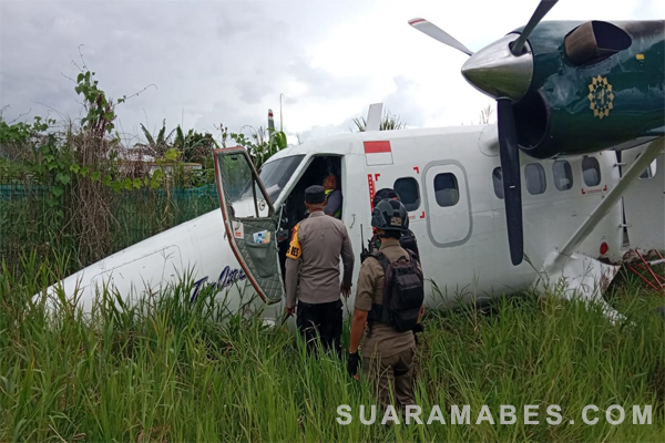 Kapolres Dogiyai Terjun Langsung Evakuasi Pesawat Rimbun Air yang Tergelincir